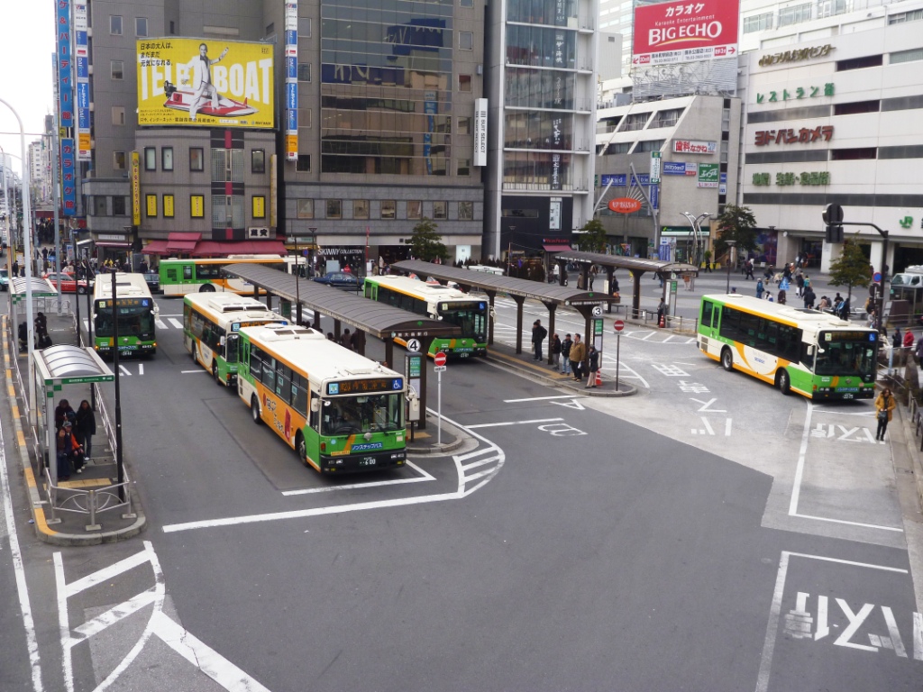 錦糸町駅前ターミナルにはバスが絶えず停車しており、見応えは十分。