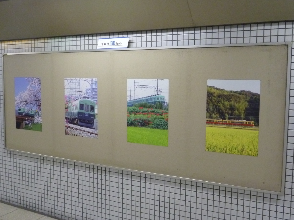 通路には「京阪神B0セット」と称した、懐かしい京阪電車の写真が多数。