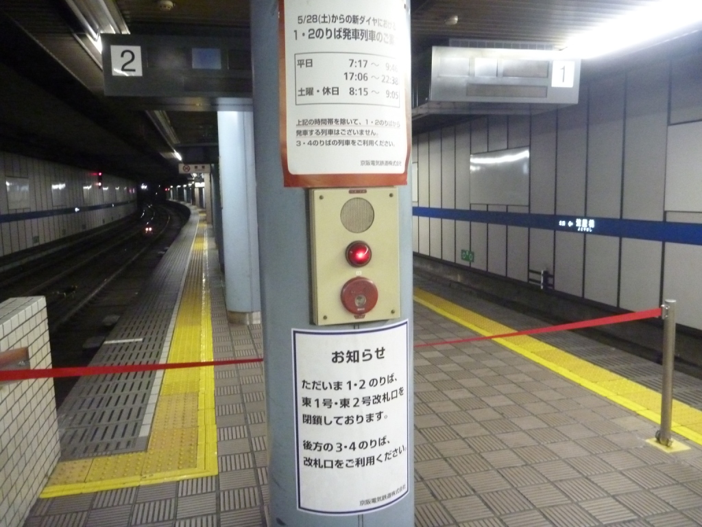▲2011年5月の減便を痛感する1枚。それまでは2番線が日中使われていました。@淀屋橋
