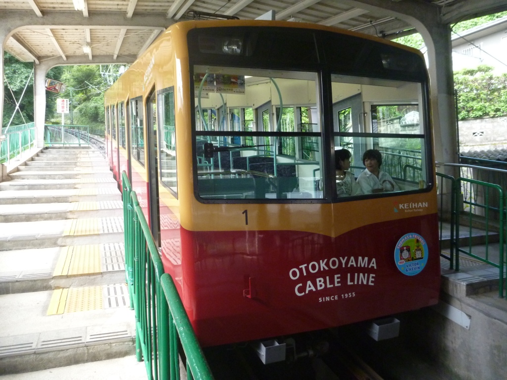 ▲普段は15分間隔の男山ケーブル。これでは八幡宮への参拝客を捌けません。@八幡市