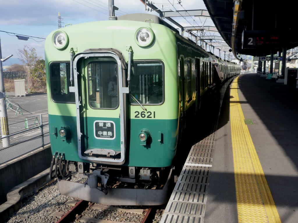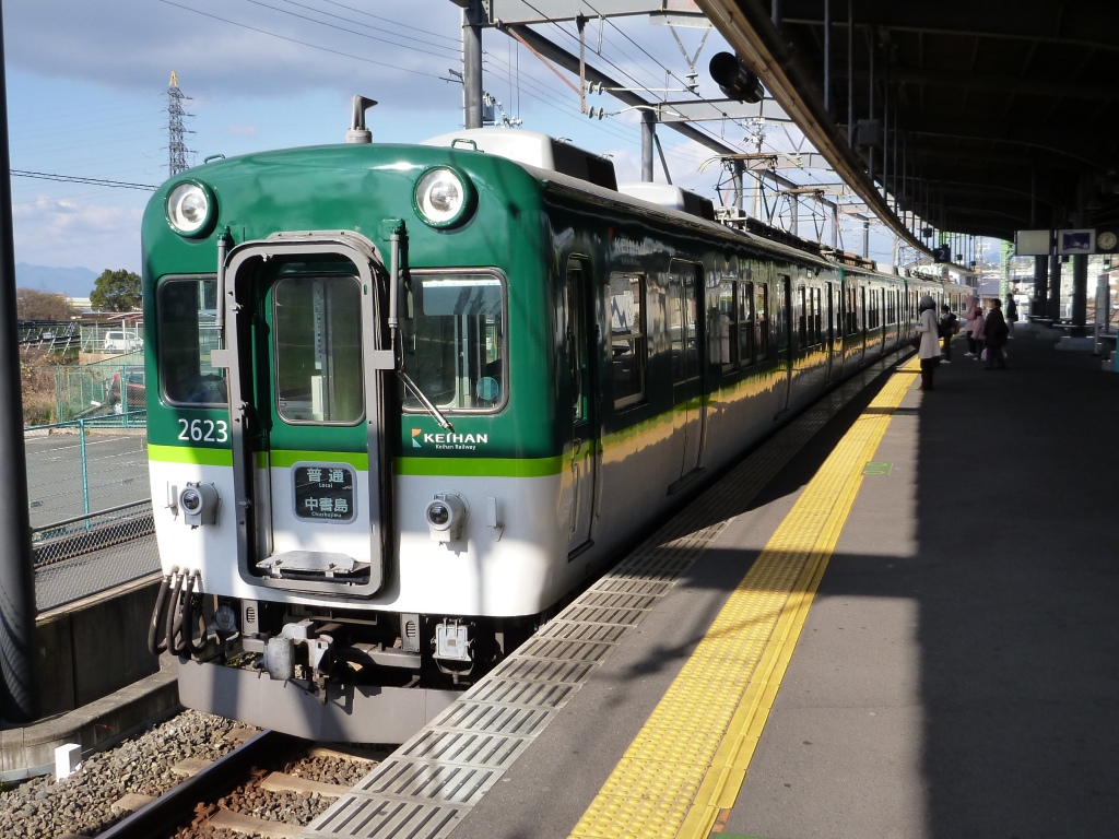 普段の場合10分間隔の 普 通 又は 準 急 のみ。正月でこれは無謀ですね。@八幡市