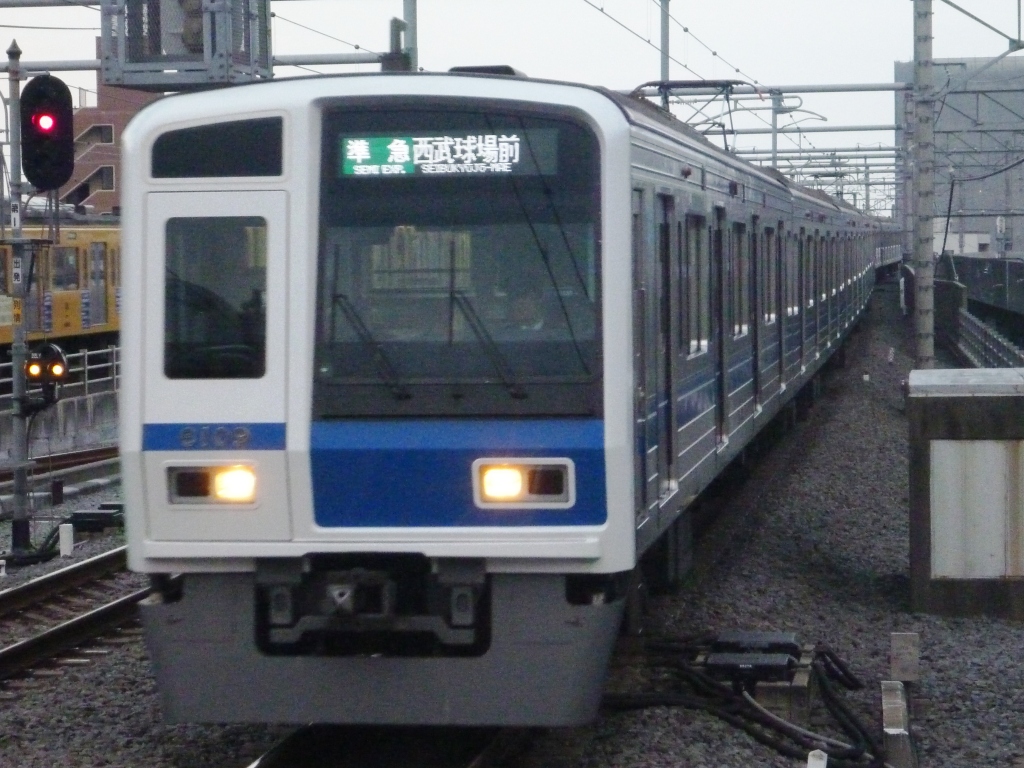 ▲ 準 急 池 袋 (20000系10連):東長崎で豊島園始発の 各 停 を追い越し。