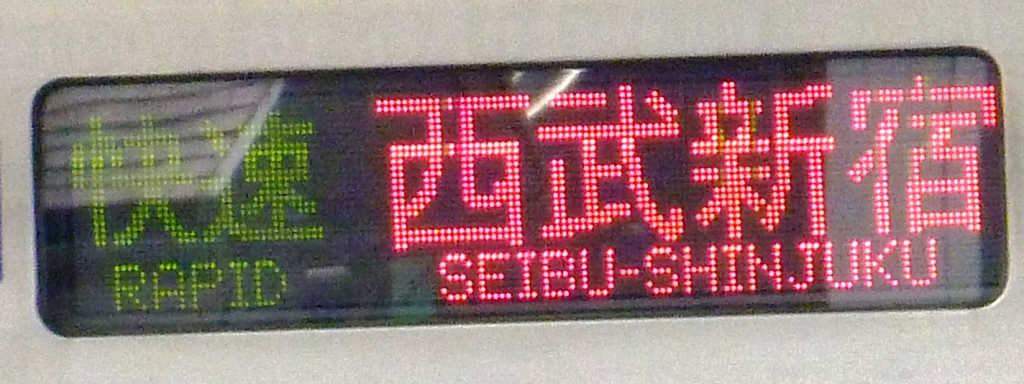 ▲拝島快速 拝 島 (2000系10連):緑LEDの種別表示は分かりにくいですね…。