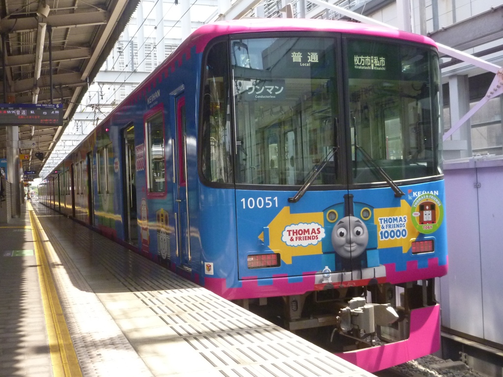 ▲ラッピング車の例、京阪「きかんしゃトーマス号2011」。1年間の運行です。