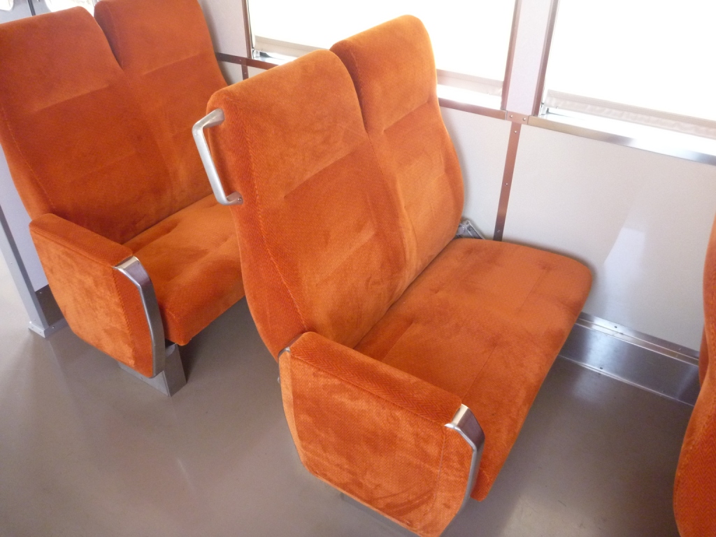 ▲京阪8000系で使われていた座席(改装工事の余剰品でしょう)。但し転換はできません。