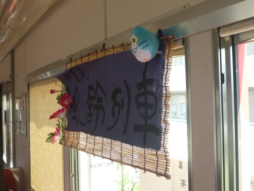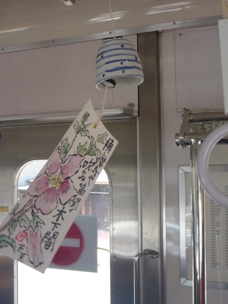 こちらは同じく200系でしたが、「風鈴電車」ということで車内には雅な装飾が。