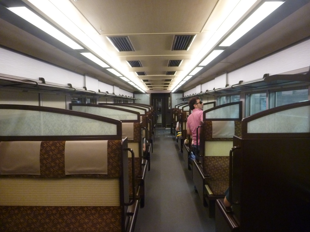 1,2,5,6号車は転換クロスシートのモケットを変えただけ。見どころはやはり3,4号車です。