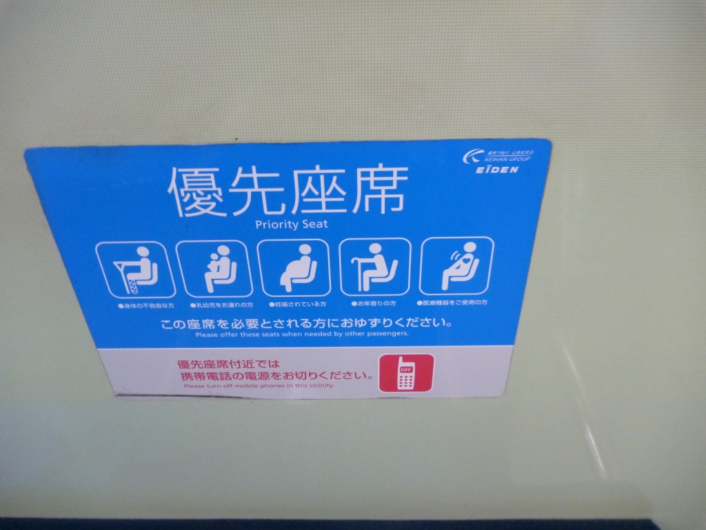 ふと優先座席(西日本では「優先席」ではなく「優先座席」と呼ぶようです)のステッカーをチラリ。