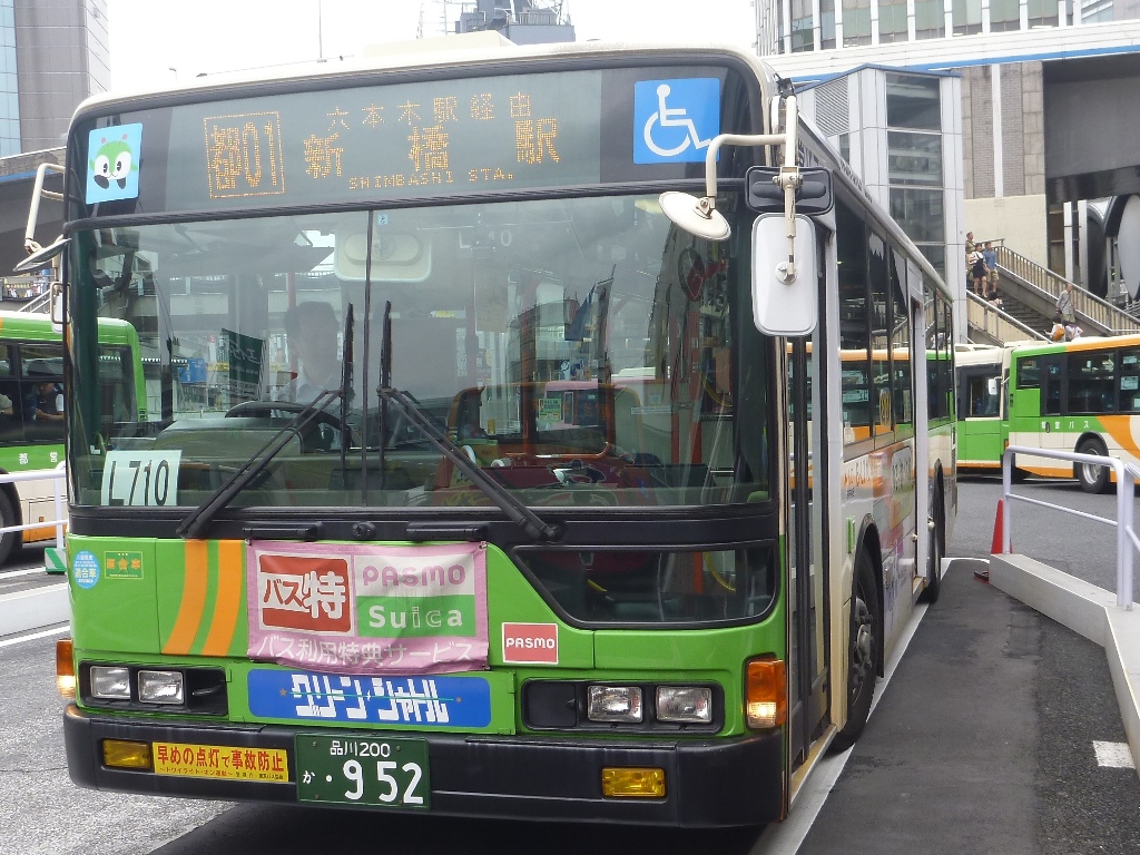 まずは渋谷営業所のB-L710から観察開始。都01系統(渋谷駅~新橋駅)の運用でした。