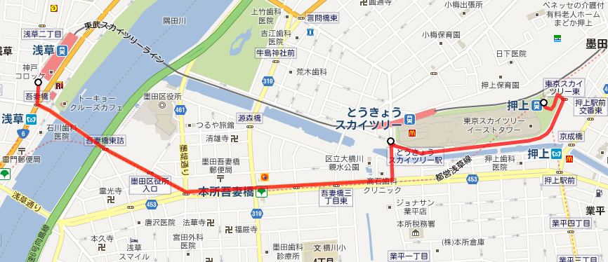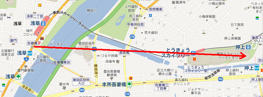 背に腹は代えられないということで、吾妻橋から道なりに歩くことおよそ15分。