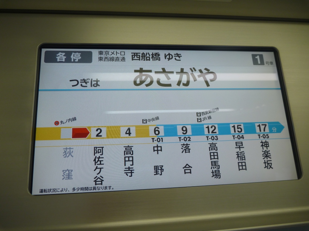 主要都市の地下鉄であれば、「次は 北千住 Next Kita-senju(H-21)」というような表示が見られますね。