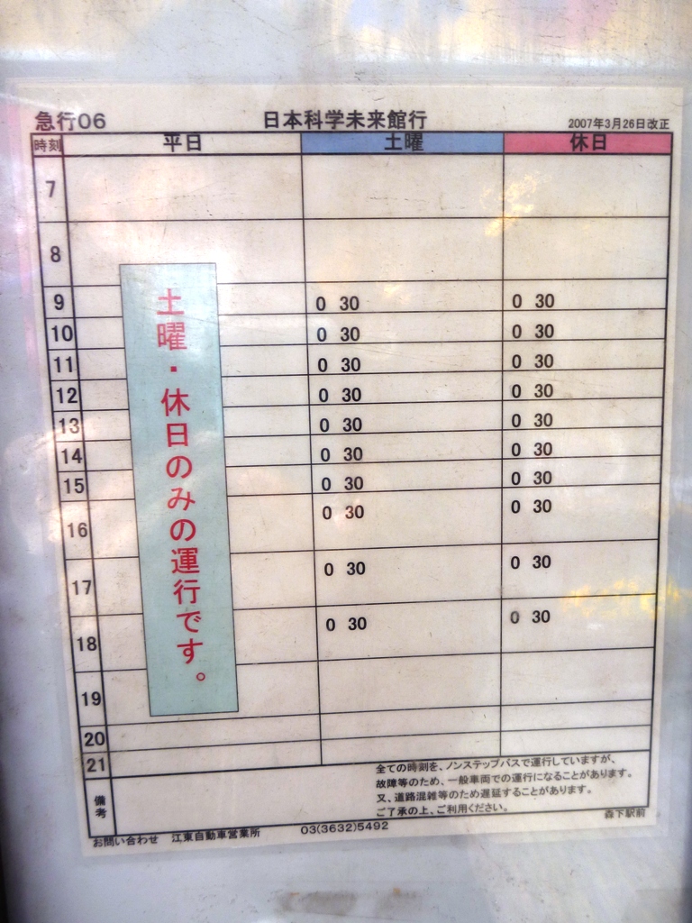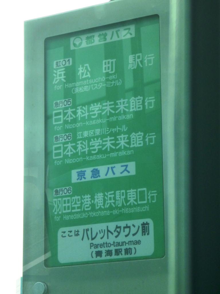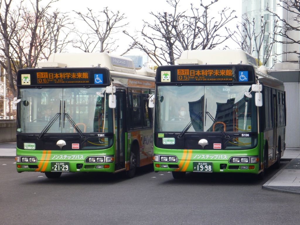 ▲既出ですが急行バス同士の並び。登場当初はあり得なかった並びでもあります。@日本科学未来館