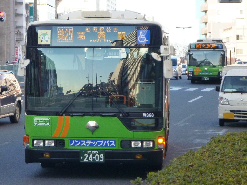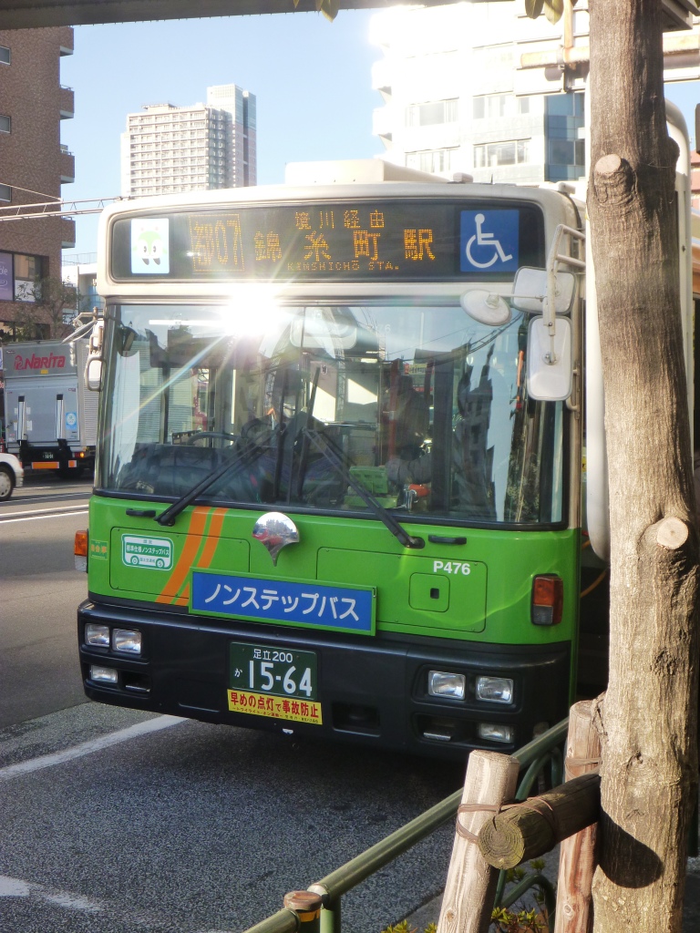 ▲後ろには錦27系統小岩ゆきも続行しており、高密度運行ぶりが伺えます。@亀戸一丁目