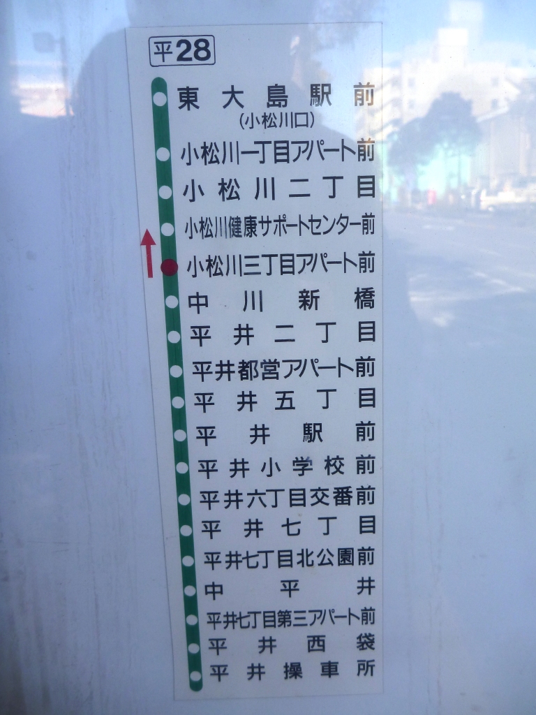 ▲バス停に「平井」「小松川」の文字が一切無いのは中川新橋だけ!@小松川三アパート