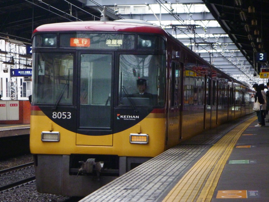 そんなこんなで京橋に到着、ホームの端で列車を撮っていると小学生の鉄道ファンに絡まれました。