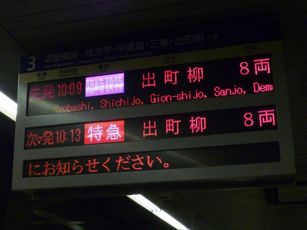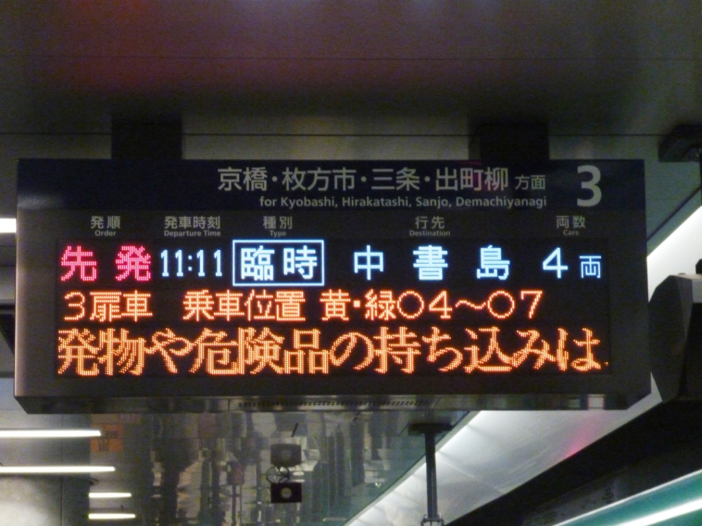 自分にとっては京阪の初臨時列車となったような…?電光掲示板の表示は新鮮でした。