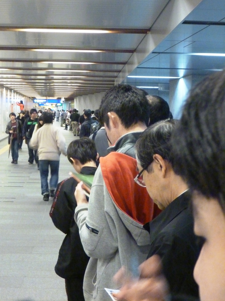 受付は改札外でとのことなので、改札を出て係員に指示された方へと並びました。すると…。