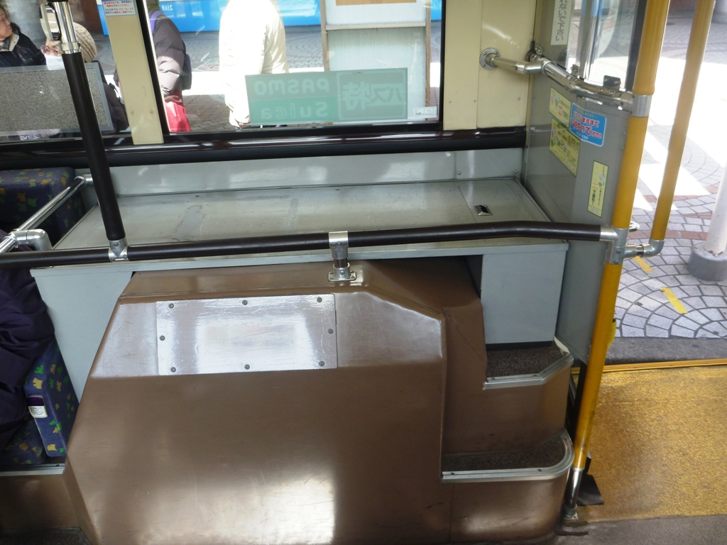 この車両も初期ノンステップ車らしく後方にデッドスペースがありますね。