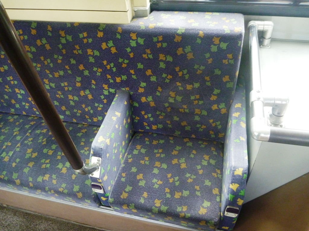 ▲都営バスの座席モケットと言えば「みんくる」ですが、イチョウの葉だった時期もありました。